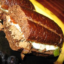 Divide the meat between the bottoms of 4 rolls, layer with onion and green pepper, then top with sliced cheese. Place on cookie sheet, and broil until cheese is melted. Cover with tops of rolls, and serve.
