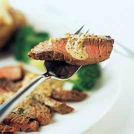 After transferring steaks to large plate, pour off all but 1 tablespoon fat from now-empty skillet. Return skillet to low heat and add shallot; cook, stirring frequently, until beginning to brown, 2 to 3 minutes. Add wine and increase heat to medium-high; simmer rapidly, scraping up browned bits on pan bottom, until liquid is reduced to glaze, about 30 seconds; add broth and simmer until reduced to 1/4 cup, about 3 minutes. Add cream and any meat juices; cook until heated through, about 1 minute. Stir in mustard; season to taste with salt and pepper. Spoon sauce over sliced steak.