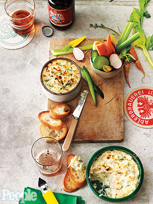 2. Preheat oven to 350 degrees. Brush baguette slices with remaining butter, season with salt and pepper. Bake until golden.