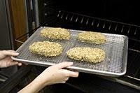 This recipe was developed using natural pork, but enhanced pork (injected with a salt solution) will work as well. If using enhanced pork, eliminate the brining in step 1 (see related How To Cook). The bread crumb mixture can be prepared through step 2 up to 3 days in advance. The breaded chops can be frozen for up to 1 week. They don't need to be thawed before baking; simply increase the cooking time in step 5 to 35 to 40 minutes.