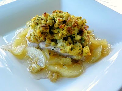 Heat oven to 375.Prepare stuffing as directed on package. Spread pie filling onto bottom of 13x9-inch baking dish sprayed with cooking spray; top with chops and stuffing. Cover with foil. Bake 40 minutes or until chops are done (160ºF), removing foil after 30 min.