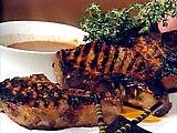 Place chops on grill, brushing fresh marinade onto chops as needed (use the marinade which was stored in the jar but pour it out into a bowl before brushing so as not to contaminate the remaining gravy.)