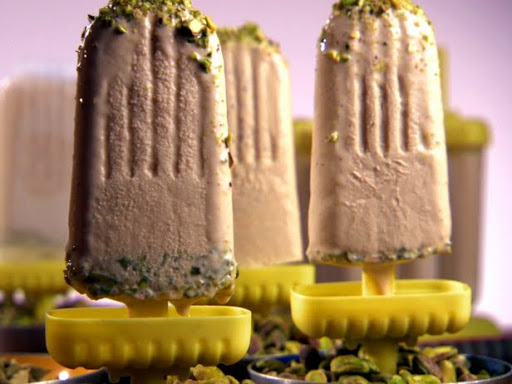 Strain the evaporated milk into a large bowl. Whisk in the condensed milk, heavy cream and pistachios. Either pour the mixture into ice pop molds, small bowls or a large bowl. Cover the bowls with a piece of plastic wrap to avoid freezer burn and the formation of a "skin". Pop them into the freezer and freeze overnight.