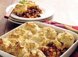 4. Drop dough by 12 spoonfuls onto beef mixture.