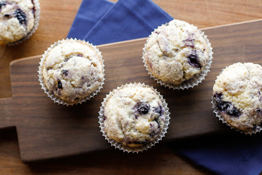 Bake at 450 degrees for about 6 minutes or until the muffins have risen about 1/2" above the rim of the muffin tin. Then turn the oven down to whatever temperature your recipe originally calls for, and bake for an additional 8-10 minutes or until a toothpick inserted in the center comes out clean.