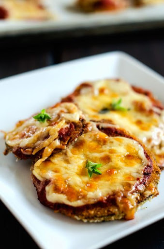 Dredge eggplant in quinoa mixture (only a little will stick) and then dip in the egg mixture and recoat with the quinoa. Place on prepared baking sheet and spray will olive oil. Bake for 15 minutes. Carefully turn and bake for 15 minutes more.