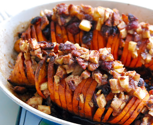 Wash and peel the sweet potatoes 3/4 of the way, leaving some peel on the bottom of the potato.