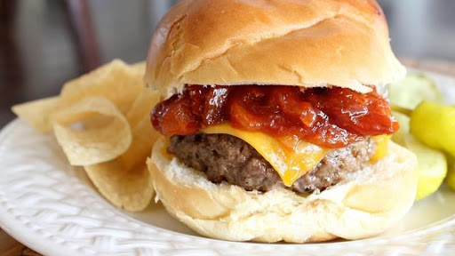 Steakhouse Cheddar Burger with Warm Bacon BBQ Sauce