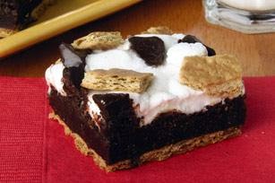 BAKE 30 to 32 min. or until toothpick inserted in center comes out with fudgy crumbs. (Do not overbake.) Sprinkle with marshmallows and chocolate chunks. Bake 3 to 5 min. or until marshmallows begin to puff. Press reserved graham pieces gently into marshmallows. Cool. Use foil to remove brownies from pan before cutting to serve.
