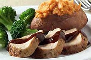 For a colorful complement to this savory pork, serve with baked sweet potatoes and fresh steamed broccoli.