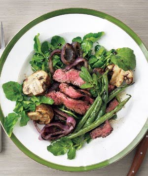 3.Divide the watercress, grilled vegetables, and steak among bowls. Drizzle with the remaining 2 tablespoons of olive oil and 2 tablespoons of vinegar.
