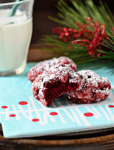 5. Using a cookie scoop, form one inch dough balls and roll into powdered sugar to coat.