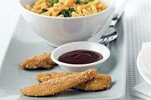 MEANWHILE, prepare Dinner as directed on package, using the Light Preparation Directions and adding broccoli to the cooking water for the last 3 min. of the pasta cooking time. Place two-thirds of the chicken fingers on serving plate. Serve with the prepared Dinner and barbecue sauce for dipping. Makes 4 kid servings.