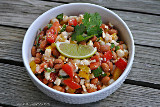 Whisk together the lime juice, olive oil, cumin, and smoked paprika. Pour over the salad and stir. Add the feta cheese, salt, and pepper to taste. Serves 4.