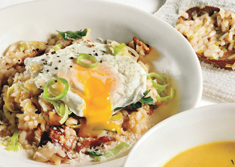 Bacon and Leek Risotto with Poached Egg