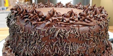 Bake for 50 minutes. Cool for a few moments than carefully invert the pans removing the cake. Cool completely before frosting with a batch of Dark Chocolate Icing.