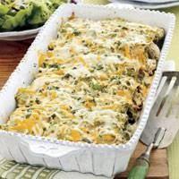4. Stir sour cream and broth into remaining salsa verde mixture in skillet; spoon over filled tortillas. Cover one baking dish with foil and bake 15 minutes. Remove foil; sprinkle with 1 cup cheese and 1 tablespoon cilantro. Bake 5 minutes longer or until cheese melts. Meanwhile, sprinkle remaining cheese and cilantro over second casserole and prepare for freezing. Or simply bake 30-45 minutes total to eat now!!