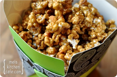 Turn the popcorn out onto the baking sheets, spreading into an even layer. Bake the popcorn for one hour, stirring and tossing every 20 minutes. Move the bottom tray to the upper rack and vice versa each time you stir. The popcorn will deepen in color and harden a bit as the caramel bakes and sets. Cool the popcorn to room temperature. Store in an airtight container. I’ve found the popcorn will keep, stored tightly, for 1-2 weeks.