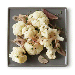 2. Combine olive oil, vinegar, garlic, thyme, salt, and pepper. Toss cauliflower and shallots with vinaigrette.