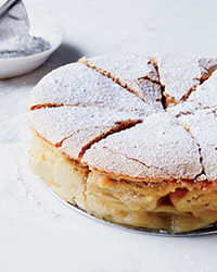 Bake the sharlotka for about 1 hour, until it is golden and crisp on top and a cake tester inserted in the center comes out clean. Transfer to a rack and let rest for 15 minutes. Unmold and transfer to a serving platter. Dust with confectioners’ sugar and serve warm.