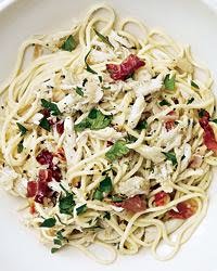 3. Meanwhile, cook the pasta in a large pot of boiling salted water until al dente. Drain, reserving 2/3 cup of the cooking water.