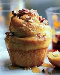 6. Unmold the buns. Pour the glaze over the hot buns and sprinkle with the pecans. Let stand until the buns have soaked up some of the glaze and are cool enough to eat, about 20 minutes. Serve warm.