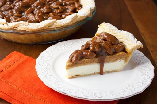 Pumpkin Cream Cheese Pie w/Bourbon Pecan Caramel Sauce