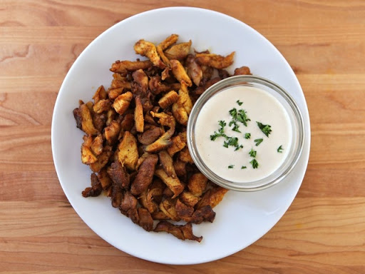 2. Add thin, short chicken strips and seasonings.