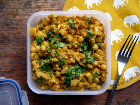 This easy cauliflower-and-chickpea supper gets a hit of Indian spiciness from garam masala, ginger, garlic, and lime.