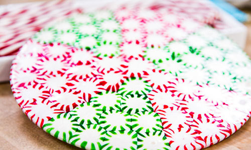 The plates are edible so you can break off pieces and add them to you hot cocoa for peppermint hot chocolate! You can also use them as a serving piece for dessert…and then eat the plate!