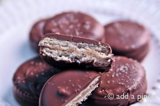 Dip each peanut butter cracker into the melted chocolate using a fork and then place onto a wax paper lined tray to dry.
