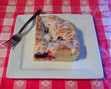 Grease a 13 x 9 pan. Stir batter; Pour 3/4 batter into pan and top with cherry filling. Spoon remaining batter by tablespoons over batter. Cover again and let rise until light, approximately 20 – 30 minutes.