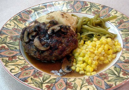 Salisbury Steak with Mushroom Gravy and Roast Garlic Mashed Potatoes