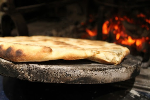 Torta al Testo, a sort of pita bread from Umbria in Italy, is baked on a wood-fire-heated stone, in a dying art that dates back to the ancient Etruscans.