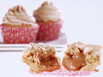Place 3 tablespoons of batter in the bottom of each cupcake liner. Top with 1 tablespoon of the caramel mixture. Add 1/4 cup of batter on top of the caramel mixture.