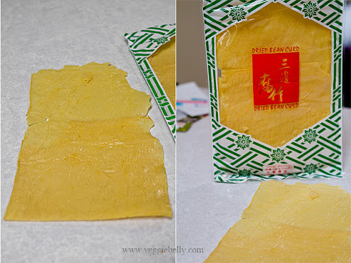 • three 9×12 inch sheets of dried or frozen tofu skin, also called yuba