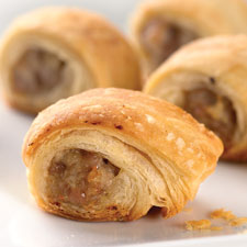 1) Divide the puff pastry into four equal pieces, and roll each piece on a lightly floured surface into a 4" x 12" rectangle.
