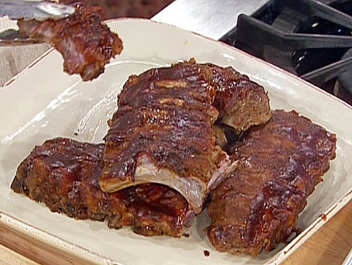 Remove the ribs from the oven and peel back the foil so that the ribs are exposed. Using a pastry brush or the back of a spoon, coat the racks lightly on the meaty sides with barbecue sauce. Return to the oven until sauce is thickened and lightly browned, about 20 minutes longer. Remove the ribs from the oven and set aside to cool briefly before cutting between the ribs and serving. Serve with more barbecue sauce, if desired.
