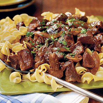 Cover and cook on HIGH 6 hours. Remove and discard bay leaf. Serve over noodles. Garnish, if desired.