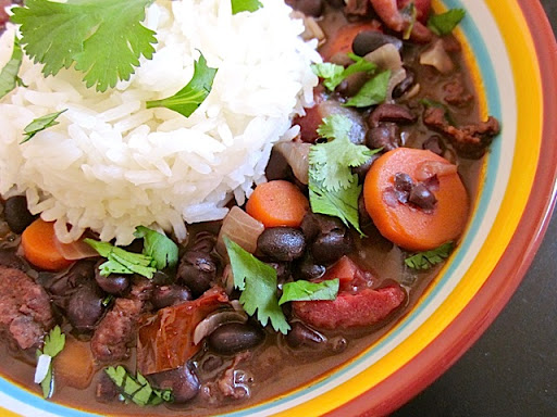 This is really delicious and my husband loves this stew. Its a nice combination of creamy coconut milk, the heat of chorizo, and black beans.