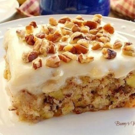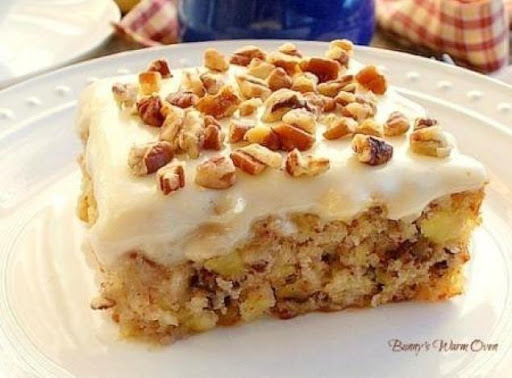 While the cake is hot, frost with the cream cheese frosting and let it soak into the cake.
