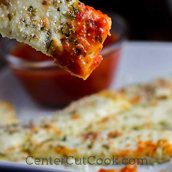 Cut into “breadsticks” and serve with warm marinara sauce for dipping.