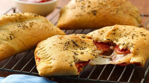 Spread 1 tablespoon marinara sauce on each rectangle to within 1/2 inch of edges. Place 8 slices of pepperoni in center of each rectangle; top with 1/3 cup cheese and 8 more slices pepperoni. Bring ends up over filling, overlapping about 1 inch. Press edges with fork to seal. Brush each sandwich with water, and sprinkle with Italian seasoning.