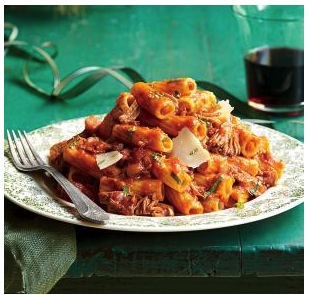 4. Add tomatoes and tomato puree; bring to a boil. Transfer to slow cooker; add thyme and next 3 ingredients. Cover; cook on HIGH 1 hour. Reduce to LOW; cook 7 hours. Discard herbs; serve sauce over hot cooked pasta.
