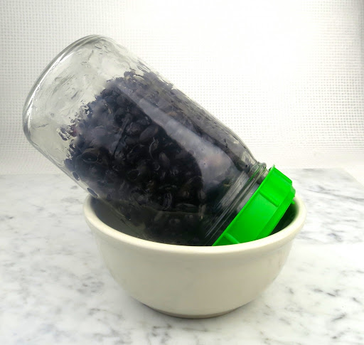1. Sort through the dry beans, removing any rocks. Rinse well. Put the beans into a quart Mason jar, and fill the jar 3/4 full with filtered water. Let it sit upright for 12 hours or overnight.