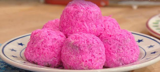 For the pink exterior, mix shredded coconut with 2 drops of red food coloring in a mixer until you get your desired color.
