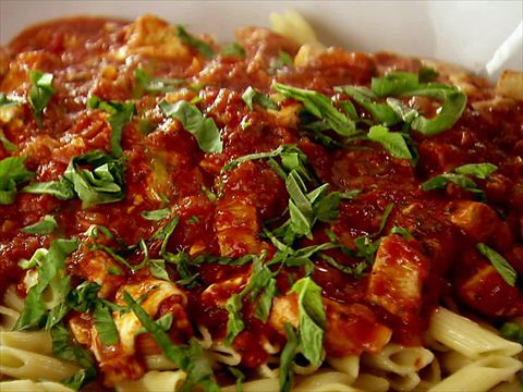 Reduce the heat to low and pour in the marinara sauce, red pepper flakes and 1/2 cup water. Stir until the onions and garlic are mixed in, then add the chicken back into the skillet. Add the parsley and stir to combine, then allow it to simmer, stirring occasionally, for 7 to 8 minutes.