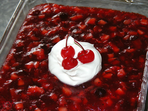 • 2 small (3-ounce) packages cherry or raspberry Jell-O gelatin (SF works too)