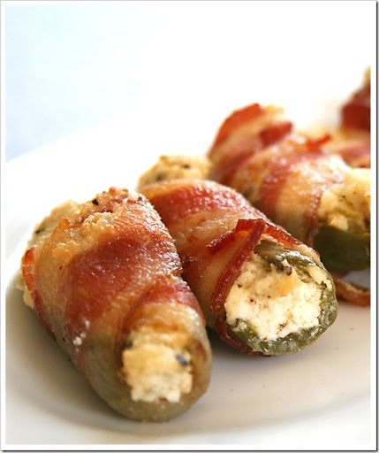 Combine cream cheese and spices in small bowl. Spoon mixture into each pepper half, until level. Wrap each in bacon, and place on baking sheet. Bake for 40-45 minutes. Remove and enjoy!