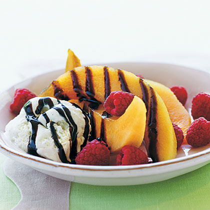 * Serving size: 3 slices cantaloupe, 1/2 cup ice cream, 1/4 cup raspberries, and 1 1/2 teaspoons balsamic glaze
